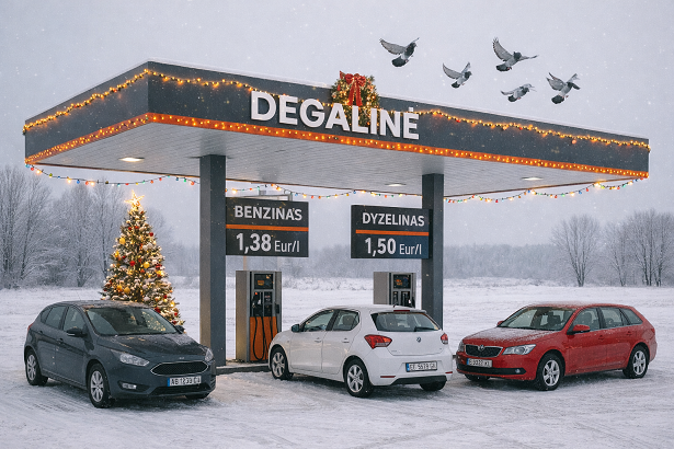 2025 12 25Lietuvoje per savaitę vidutinė benzino kaina sumažėjo 1 proc., o dyzelinas pigo 1,2 procento. Degalai pigo visą gruodį – keturias savaites iš eilės. ES šalyse praėjusią savaitę vidutinės degalų kainos degalinėse taip pat mažėjo: benzinas atpigo 1,1 proc., o dyzelinas – 1,7 procento. Palyginti su ES šalių kainų vidurkiais, mūsų šalyje benzino vidutinė kaina mažesnė 13,7 proc., dyzelino – 1,7 procento. Vidutinė Brent naftos kaina – 56,9 USD/bbl.