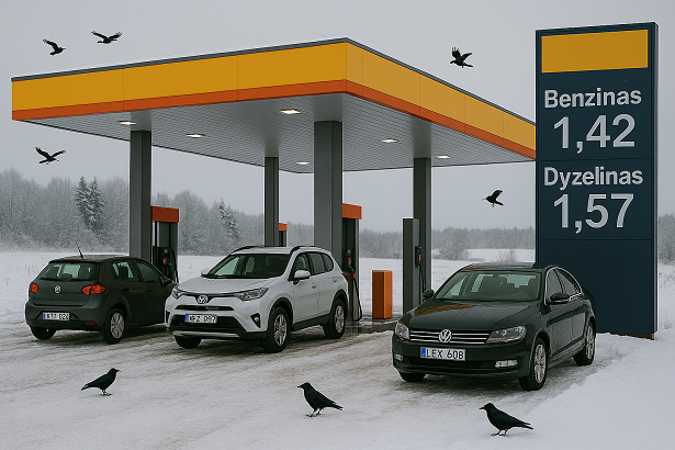 Gruodžio 1-ąją, pirmadienį, mūsų šalies degalinėse benzinas vidutiniškai kainavo 1,42 Eur/l, dyzelino vidutinė kaina siekė 1,57 Eur/l. Per savaitę degalų vidutinės kainos sumažėjo 0,1 ct/l. Skirtumas tarp dyzelino ir benzino kainų, kaip ir praėjusią savaitę, sudaro 0,15 Eur/l. Degalinių tinkluose vidutinės benzino kainos svyravo nuo 1,38 Eur/l iki 1,49 Eur/l, dyzelino – nuo 1,49 Eur/l iki 1,63 Eur/l.