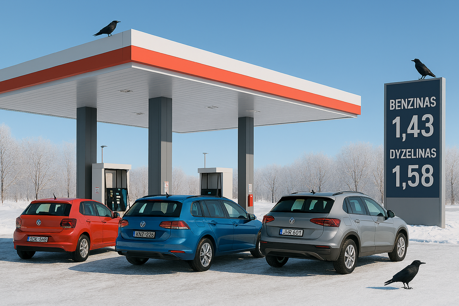 Sausio 26-ąją, pirmadienį, mūsų šalies degalinėse benzinas vidutiniškai kainavo 1,43 Eur/l, dyzelino vidutinė kaina siekė 1,58 Eur/l. Degalinių tinkluose benzino kainos svyravo nuo 1,35 Eur/l iki 1,54 Eur/l, dyzelino – nuo 1,48 Eur/l iki 1,70 Eur/l. Palyginimui, pernai, 2025 m. sausio 27 d., vidutinė benzino kaina šalyje buvo 1,49 Eur/l, o dyzelino – 1,62 Eur/l. Priminimui, 2023-ųjų vasario 7 d. dyzelinas buvo 0,16 Eur/l brangesnis už benziną.