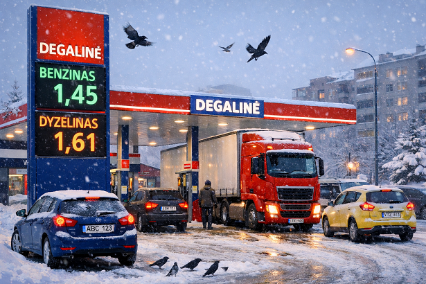 2026 02 12Praėjusią savaitę Brent naftos vidutinė kaina mažėjo ir išliko beveik 10 proc. mažesnė nei prieš metus. Lietuvoje vasario pradžioje (iki vasario 11 d.) benzino ir dyzelino didmeninės kainos didėjo. Degalai degalinėse pabrango: benzino vidutinė kaina padidėjo 1 proc., o dyzelino kilo 0,9 procento. Skirtumas tarp benzino ir dyzelino kainų nepakito ir sudaro 0,16 Eur/l. Europos Sąjungos šalyse praėjusią savaitę vidutinės degalų kainos degalinėse taip pat kilo: benzinas vidutiniškai brango 0,2 proc., o dyzelinas – 0,1 procento. Palyginti su ES šalių kainų vidurkiais, mūsų šalyje benzino vidutinė kaina mažesnė 10,7 proc., dyzelino kaina didesnė 1,7 procento.
